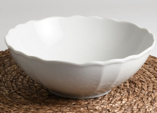 Ensaladera porcelana blanca ondulada y con relieve 23 cm x 8 cm alto. Fabricación UE, sin sello abajo. Ofrecemos porcelana blanca de mesa, vajillas, platos, fuentes y bandejas, Bowls. Porcelana con la mejor relación calidad-precio. Toda nuestra porcelana blanca es válida para pintura sobre porcelana con pigmento y puede ser horneada a 800 grados.